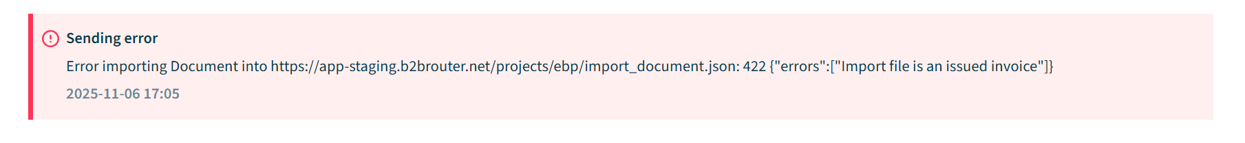 Error : Import file is an Issued Invoice